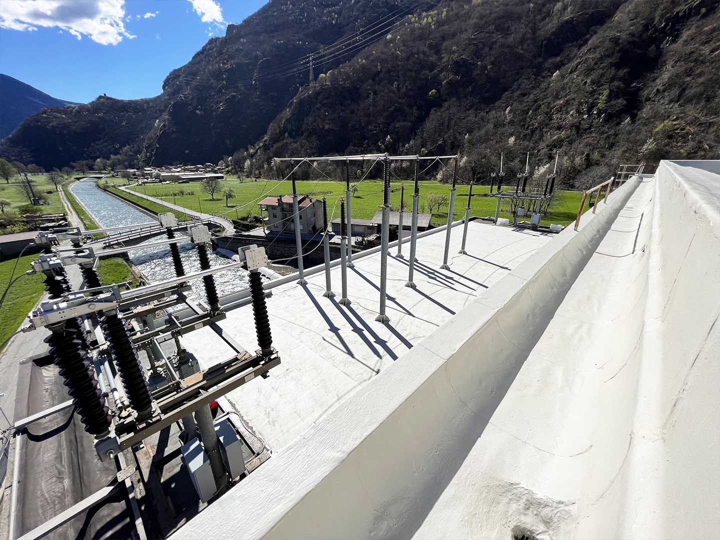 Manutenzione paratoie elettromeccaniche imbocco presa centrale, manutenzione straordinaria portale in c.a. sostegno paratoie, manutenzione canale di carico e scarico, impermeabilizzazione tetto piano, sistemazione soffitto locale generatori presso centrale Grand Vert nel comune di Donnas (AO).